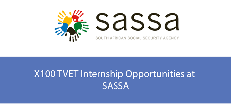 Internship Alert: X100 TVET Internship Opportunities at the South African Social Security Agency (SASSA). Application Deadline: 28 January 2024 Unlock 18 months of valuable workplace experience in your field of study (HR, Finance, Business Administration, Communications, Customer Care, ICT, etc.)